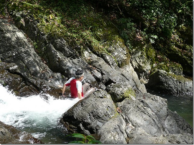 由於沒有看過滑水道的真實面目,加上沿途實在太平緩了,以至於當我看到一個似乎有坡度的石壁上有水時,馬上驚呼:「滑水道!!」結果當我興高采烈的坐上我自以為的滑水道時才發現,根本動都動不了>"<